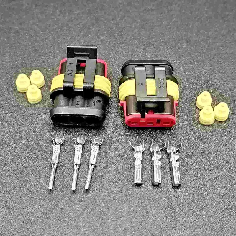 Set Spinotti 3 Poli IP67 comprensivo di 6 (sei) gommini in silicone, 3 (Tre) faston maschio , 3 (Tre) faston femmina